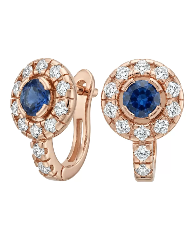 Náušnice růžové zlato 585/1000, přírodní diamanty a safíry, 109015-CV-SAF
