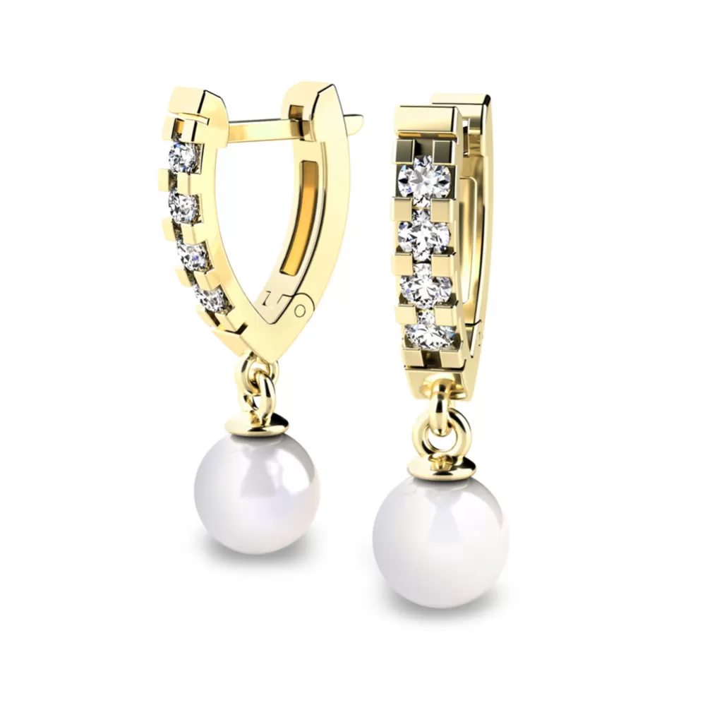 Moderní náušnice Vás osloví nádhernou brilancí diamantů v kombinaci s bílými perlami! Diamanty jsou vybroušeny kulatým briliantovým brusem, který jim dodává maximální brilanci, dokonale odráží světlo a neuvěřitelné září. Náušnice jsou vyrobeny ze žlutého čtrnáctikarátového zlata - 585/1000 v lesklé povrchové úpravě.