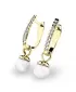 Dámské náušnice zdobené sladkovodními perlami a diamanty budou ideálním dárkem pro každou ženu. Tyto nádherné náušnice jsou vyrobeny z bílého čtrnáctikarátového zlata - 585/1000 v lesklé povrchové úpravě s devíti diamanty v každé náušnici . Diamanty jsou vybroušeny briliantovým brusem, díky kterému dokonale odráží světlo a neuvěřitelné září. Vsazování diamantů a drahých kamenů provádějí naši nejzkušenější mistři zlatníci ručně pod mikroskopem s přesností na 0,01mm a proto nehrozí vypadnutí kamínků jako to bývá u strojně vyráběných náušnic.