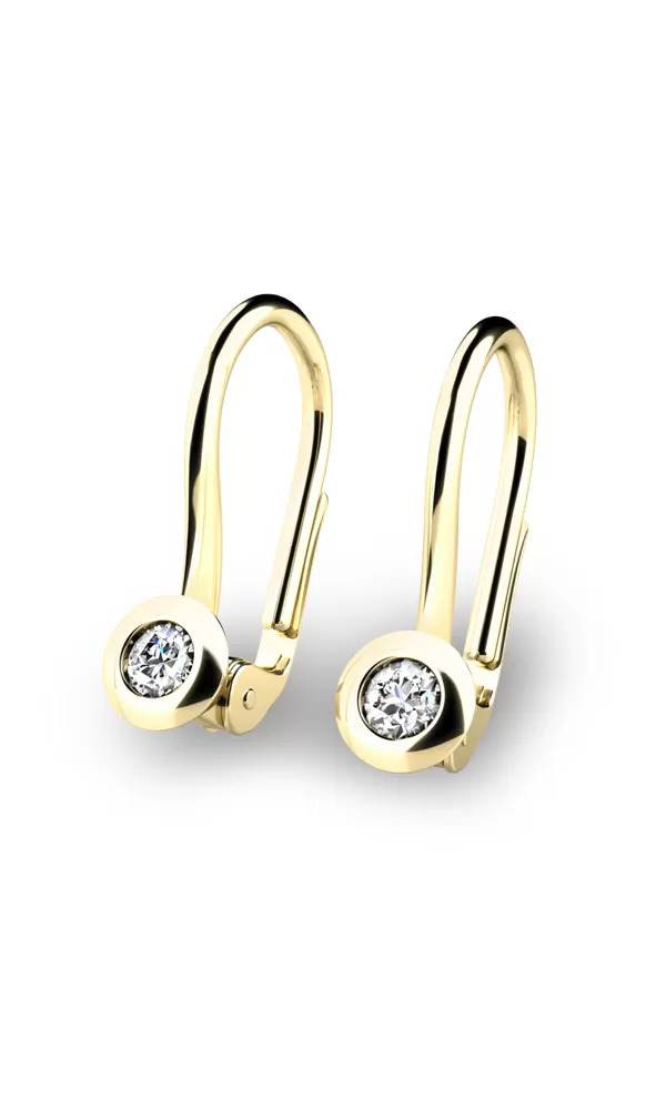 Decentný model visiacich náušníc zdobia oslňujúce diamanty briliantového brusu. Tieto nádherné, žiarivé náušnice sú vyrobené zo žltého štrnásťkarátového zlata - 585/1000 v lesklej povrchovej úprave. Visiace náušnice sú zdobené jedným diamantom briliantového brusu, ktorý je vsadený uprostred náušníc. Vďaka precíznemu brúsu diamanty získajú dokonalú brilanciu, skvele odráža svetlo a september. Náušnice sa vyrábajú aj v bielom zlate a zapínajú sa na klapku.