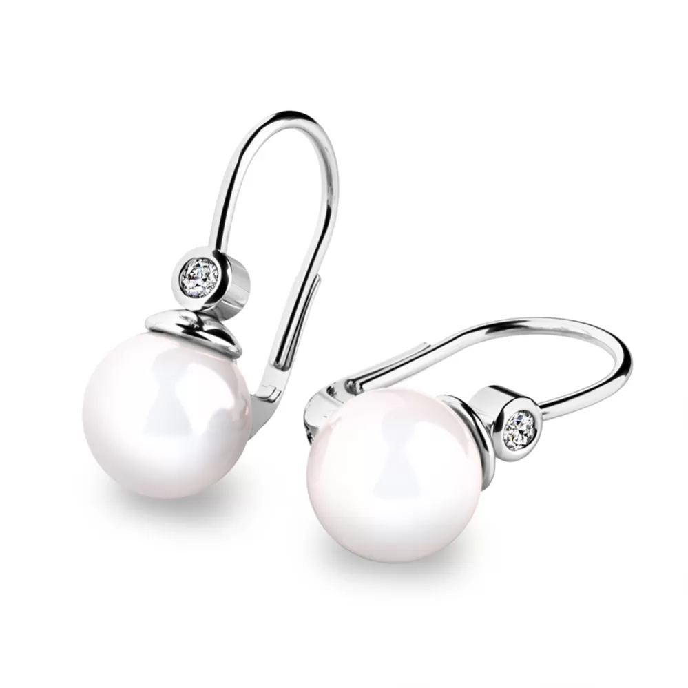 Nádherné dámské náušnice zdobené sladkovodní perlou a diamantem budou ideálním dárkem pro každou ženu. Perly jsou velmi oblíbené díky své eleganci a vzhledu ale také proto, že darované perly nosí štěstí. Aby si perly zachovaly svůj půvab a krásu co nejdéle, je důležitá i péče. K uchování jejich krásy pomůže častější nošení, ne jen příležitostní. Tyto nádherné náušnice jsou vyrobeny z bílého čtrnáctikarátového zlata - 585/1000 v lesklé povrchové úpravě.