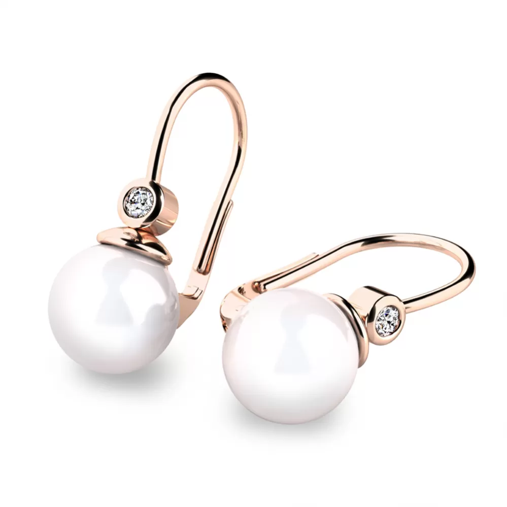 Nádherné dámske náušnice zdobené sladkovodnou perlou a diamantom budú ideálnym darčekom pre každú ženu. Perly sú veľmi obľúbené vďaka svojej elegancii a vzhľadu ale aj preto, že darované perly nosia šťastie. Aby si perly zachovali svoj pôvab a krásu čo najdlhšie, je dôležitá aj starostlivosť. Na uchovanie ich krásy pomôže častejšie nosenie, nie len príležitostné. Tieto nádherné náušnice sú vyrobené z ružového štrnásťkarátového zlata - 585/1000 v lesklej povrchovej úprave.