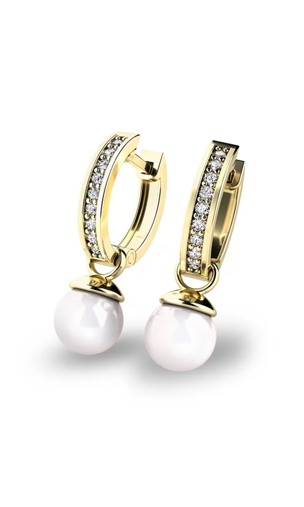 Tieto nádherné náušnice sú vyrobené zo žltého štrnásťkarátového zlata - 585/1000 v lesklej povrchovej úprave zdobené diamantmi, ktoré sú väzené do krúžku nad perlou. Diamant je symbolom čistoty. Pôsobí priaznivo na uchovanie pevných vzťahov, vyvoláva lásku a dodáva na priezračnosti partnerským vzťahom. Diamant je vnímaný ako symbol oddanosti a vernosti súčasne zvyšuje lásku, ktorú cíti manžel k svojej žene. Po tisíce rokov slúži diamant rovnako ako symbol bohatstva a býva považovaný za kameň, prostredníctvom ktorého je možné dávať najavo materiálny dostatok a súčasne ho k sebe priťahovať.
