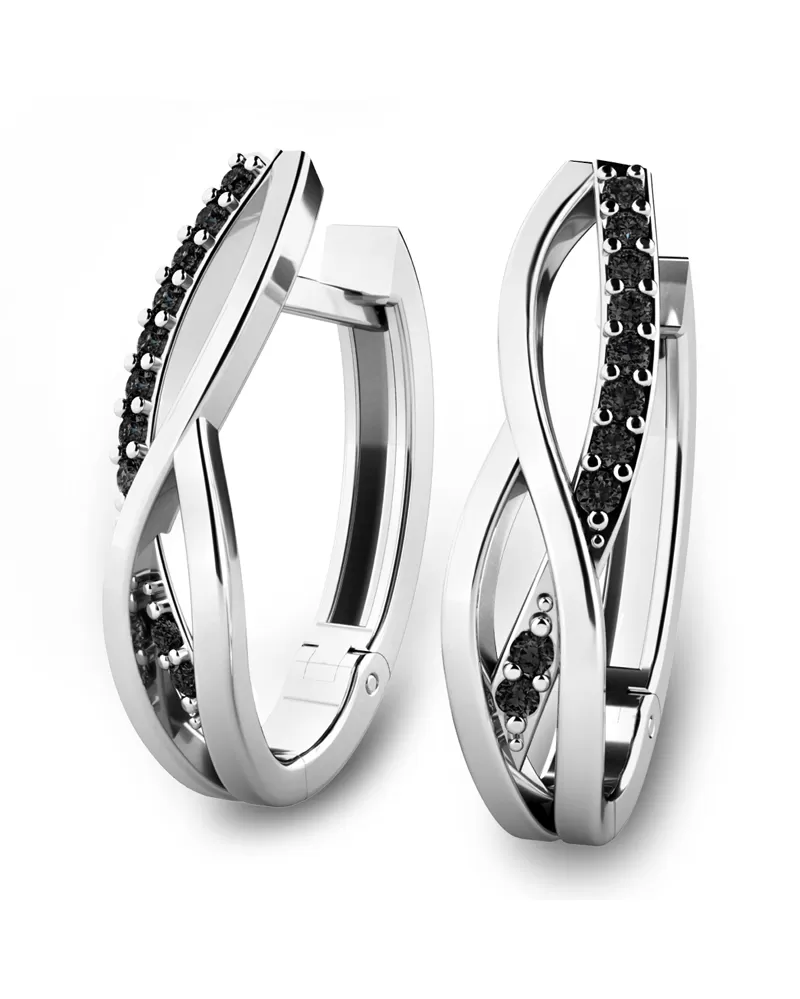 Tyto náušnice jsou vhodné pro každodenní nošení i na společenské akce a budou slušet každé ženě! Jsou vyrobeny z bílého čtrnáctikarátového zlata - 585/1000 v lesklé povrchové úpravě. V náušnicích je vsazeno dvacet kulatých diamantů v černé barvě, vybroušených briliantovým brusem. Vsazování diamantů provádějí naši nejzkušenější mistři zlatníci ručně pod mikroskopem s přesností na 0,01mm a proto nehrozí vypadnutí kamínků jako to bývá u strojně vyráběných šperků. Náušnice působí jemným a elegantním dojmem.