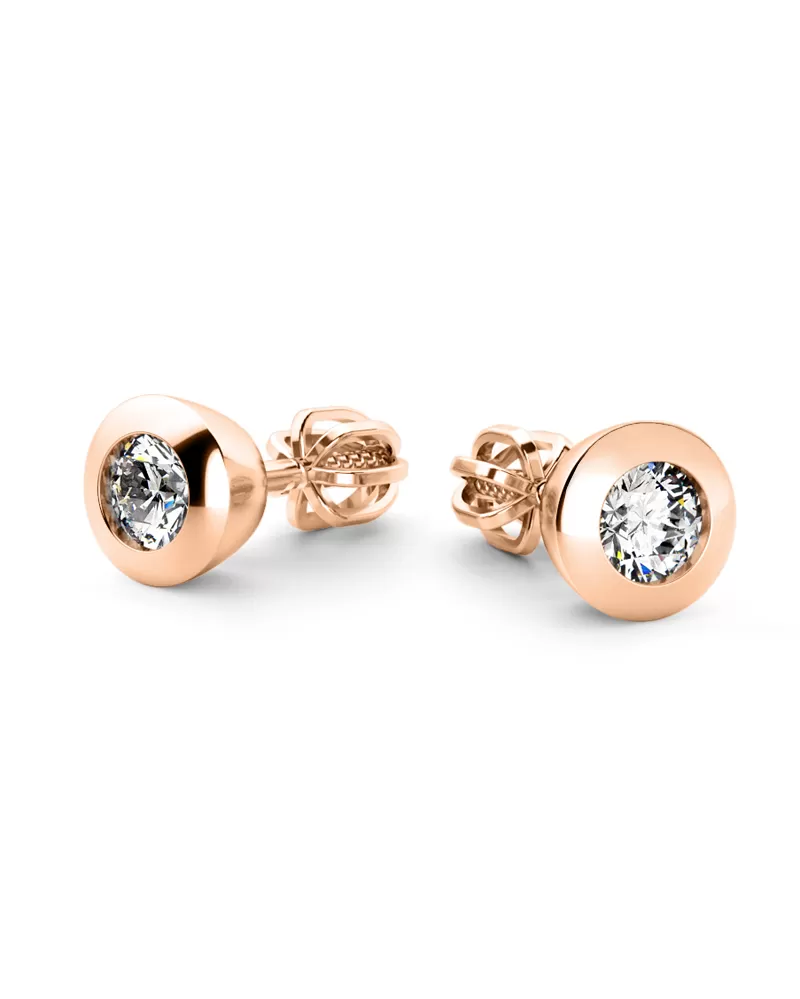Klasický dizajn náušníc v elegantnej kombinácii lesklých rámov a väčších diamantov. Tieto náušnice sú vyrobené z ružového štrnástich -karatových zlatých - 585/1000 a všetky sú v lesklom povrchu. Náušnice sú zdobené dvoma väčšími diamantmi s celkovou hmotnosťou 0,50 ct. Diamanty sú leštené brilantným brúsením, vďaka ktorému majú diamanty perfektnú brilanciu, skvele odrážajú svetlo a lesk zo všetkých pohľadov. Diamantové nastavenie vykonávajú naši najskúsenejší majstri ručne ručne pod mikroskopom s presnosťou 0,01 mm, a preto neexistuje riziko, že kamene padajú ako náušnice vyrobené v stroji. Pripevňovacie náušnice sú určené na skrutky a balóny.