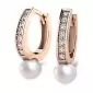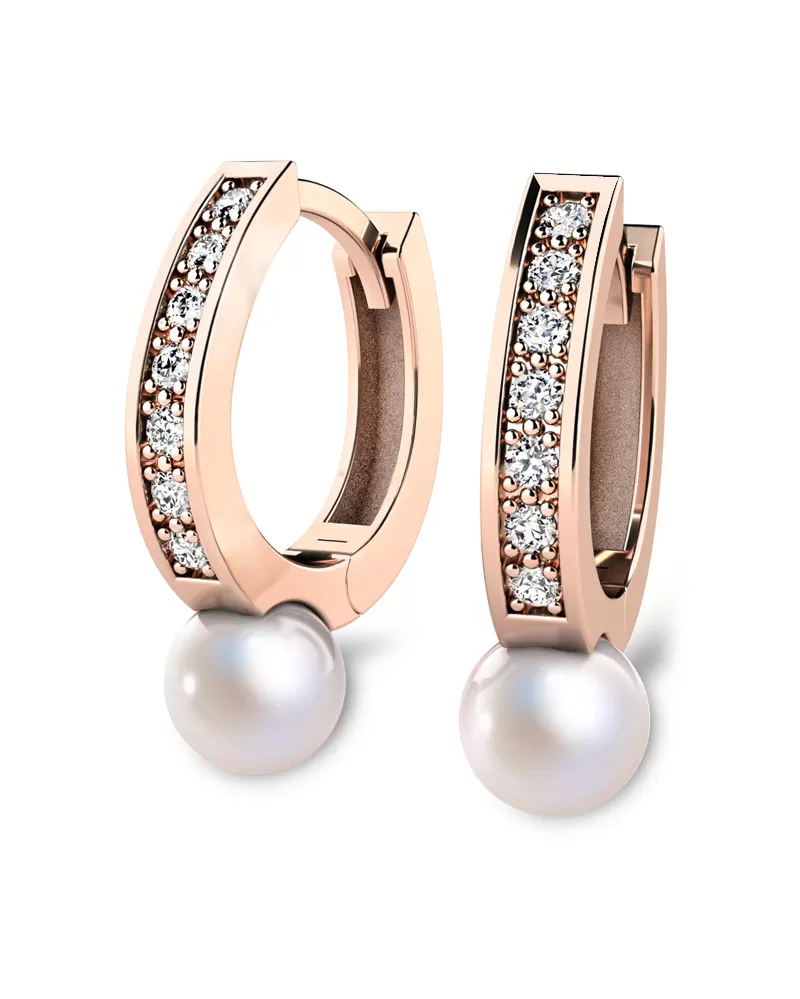 Nádherné dámské náušnice zdobené sladkovodní přírodní perlou a diamanty budou ideálním dárkem pro každou ženu. Perly jsou velmi oblíbené díky své eleganci a vzhledu, ale také proto, že darované perly nosí štěstí. Aby si perly zachovaly svůj půvab a krásu co nejdéle, je důležitá i péče. K uchování jejich krásy pomůže častější nošení, ne jen příležitostní. Tyto nádherné náušnice jsou vyrobeny z růžového čtrnáctikarátového zlata - 585/1000 v lesklé povrchové úpravě. V náušnicích je vsazeno "do zrnek" čtrnáct kulatých diamantů, vybroušený kulatým briliantovým brusem, který zajišťuje maximální brilanci vybroušených facet ze všech úhlů pohledu! Vsazování diamantů provádějí naši nejzkušenější mistři zlatníci ručně pod mikroskopem s přesností na 0,01mm a proto nehrozí vypadnutí diamantů jako to bývá u strojně vyráběných šperků. Náušnice působí dokonalým a luxusním dojmem!