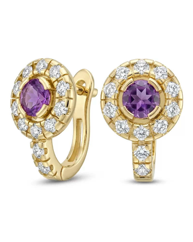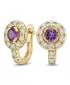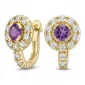 Náušnice žlté zlato 585/1000, prírodné diamanty a ametysty, 109015-ZL-AME
