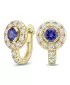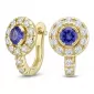 Náušnice typu "podkovičky" patria medzi veľmi obľúbené typy náušníc, náušnice sú vhodné na každodenné nosenie aj na spoločenské akcie a pristanú každej žene! Sú vyrobené zo žltého štrnásťkarátového zlata - 585/1000 v lesklej povrchovej úprave. V náušniciach je vsadených "do krapničiek" dvadsaťštyri menších diamantov a dva väčšie centrálne tanzanity. Všetky kamene sú vybrúsené okrúhlym briliantovým brusom, ktorý zaisťuje maximálnu brilanciu vybrúsených facet a krásne žiari zo všetkých uhlov pohľadu! Vsadzovanie diamantov a drahokamov vykonávajú naši najskúsenejší majstri zlatníci ručne pod mikroskopom s presnosťou na 0,01 mm a preto nehrozí vypadnutie diamantov ako to býva pri strojne vyrábaných šperkoch. Náušnice sú stredne veľké, na uchu vyzerajú elegantne a prirodzene a vďaka skladbe a štýlovo čistému vsadeniu diamantov vynikajú krásnou brilanciou kameňov!