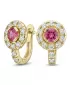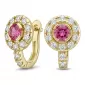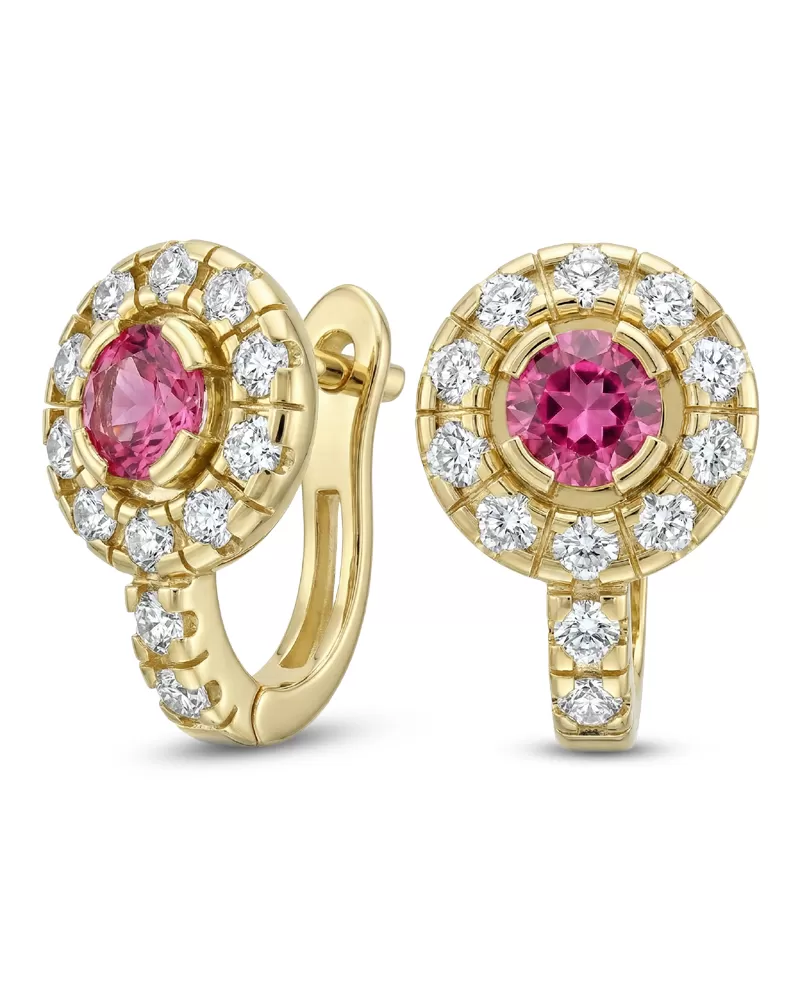 Náušnice typu "podkovičky" patria medzi veľmi obľúbené typy náušníc, náušnice sú vhodné na každodenné nosenie aj na spoločenské akcie a pristanú každej žene! Sú vyrobené zo žltého štrnásťkarátového zlata - 585/1000 v lesklej povrchovej úprave. V náušniciach je vsadených "do krapničiek" dvadsaťštyri menších diamantov a dva väčšie centrálne turmalíny. Všetky kamene sú vybrúsené okrúhlym briliantovým brusom, ktorý zaisťuje maximálnu brilanciu vybrúsených facet a krásne žiari zo všetkých uhlov pohľadu! Vsadzovanie diamantov a drahokamov vykonávajú naši najskúsenejší majstri zlatníci ručne pod mikroskopom s presnosťou na 0,01 mm a preto nehrozí vypadnutie diamantov ako to býva pri strojne vyrábaných šperkoch. Náušnice sú stredne veľké, na uchu vyzerajú elegantne a prirodzene a vďaka skladbe a štýlovo čistému vsadeniu diamantov vynikajú krásnou brilanciou kameňov!