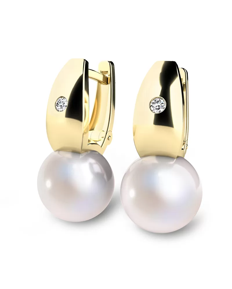Náušnice žlté zlato 585/1000, prírodné diamanty 0,032ct, prírodné perly 10988ZL-DIA-FW