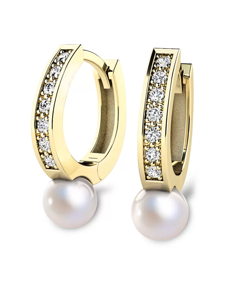 Nádherné dámské náušnice zdobené sladkovodní přírodní perlou a diamanty budou ideálním dárkem pro každou ženu. Perly jsou velmi oblíbené díky své eleganci a vzhledu, ale také proto, že darované perly nosí štěstí. Aby si perly zachovaly svůj půvab a krásu co nejdéle, je důležitá i péče. K uchování jejich krásy pomůže častější nošení, ne jen příležitostní. Tyto nádherné náušnice jsou vyrobeny ze žlutého čtrnáctikarátového zlata - 585/1000 v lesklé povrchové úpravě. V každé náušnici je vsazeno "do zrnek" čtrnáct kulatých diamantů, vybroušený kulatým briliantovým brusem, který zajišťuje maximální brilanci vybroušených facet ze všech úhlů pohledu! Vsazování diamantů provádějí naši nejzkušenější mistři zlatníci ručně pod mikroskopem s přesností na 0,01mm a proto nehrozí vypadnutí diamantů jako to bývá u strojně vyráběných šperků.