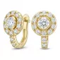 Náušnice typu "podkovičky" patria medzi veľmi obľúbené typy náušníc, náušnice sú vhodné na každodenné nosenie aj na spoločenské akcie a pristanú každej žene! Sú vyrobené zo žltého štrnásťkarátového zlata - 585/1000 v lesklej povrchovej úprave. V náušniciach je vsadených "do krapničiek" dvadsaťštyri menších diamantov a dva väčšie centrálne diamanty. Všetky diamanty sú vybrúsené okrúhlym briliantovým brusom, ktorý zaisťuje maximálnu brilanciu vybrúsených facet zo všetkých uhlov pohľadu! Vsadzovanie diamantov vykonávajú naši najskúsenejší majstri zlatníci ručne pod mikroskopom s presnosťou na 0,01 mm a preto nehrozí vypadnutie diamantov ako to býva pri strojne vyrábaných šperkoch. Náušnice sú stredne veľké, na uchu vyzerajú elegantne a prirodzene a vďaka skladbe a štýlovo čistému vsadeniu diamantov vynikajú krásnou brilanciou kameňov!
