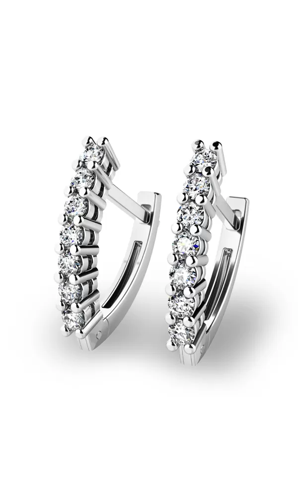 Náušnice jsou vhodné pro každodenní nošení i na společenské akce a sluší každé ženě. Tento model je zdoben čtrnácti diamanty. Diamanty jsou v briliantovém brusu, díky kterému dokonale odráží světlo a neuvěřitelné září. Diamant je nejtvrdší přírodní nerost, který oplývá vynikajícími vlastnosti a proto se vyplatí do šperků s diamanty investovat. Takový šperk vám vydrží věčnost.