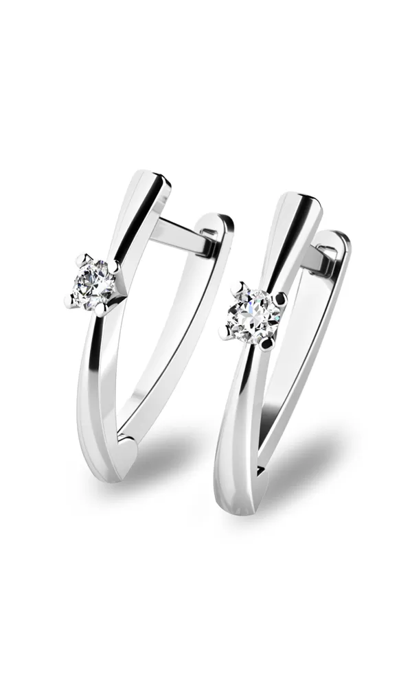 Decentní model visacích náušnic zdobí oslňující diamanty briliantového brusu. Tyto nádherné, zářivé náušnice jsou vyrobeny z bílého čtrnáctikarátového zlata - 585/1000 v lesklé povrchové úpravě. Visací náušnice jsou zdobeny jedním diamantem briliantového brusu, který je vsazen uprostřed náušnic. Díky preciznímu brusu diamanty získají dokonalou brilanci. Skvěle odráží světlo a září z každého úhlu pohledu! Vsazování diamantů provádějí naši nejzkušenější mistři zlatníci ručně pod mikroskopem s přesností na 0,01mm a proto nehrozí vypadnutí kamínků jako to bývá u strojně vyráběných náušnic.