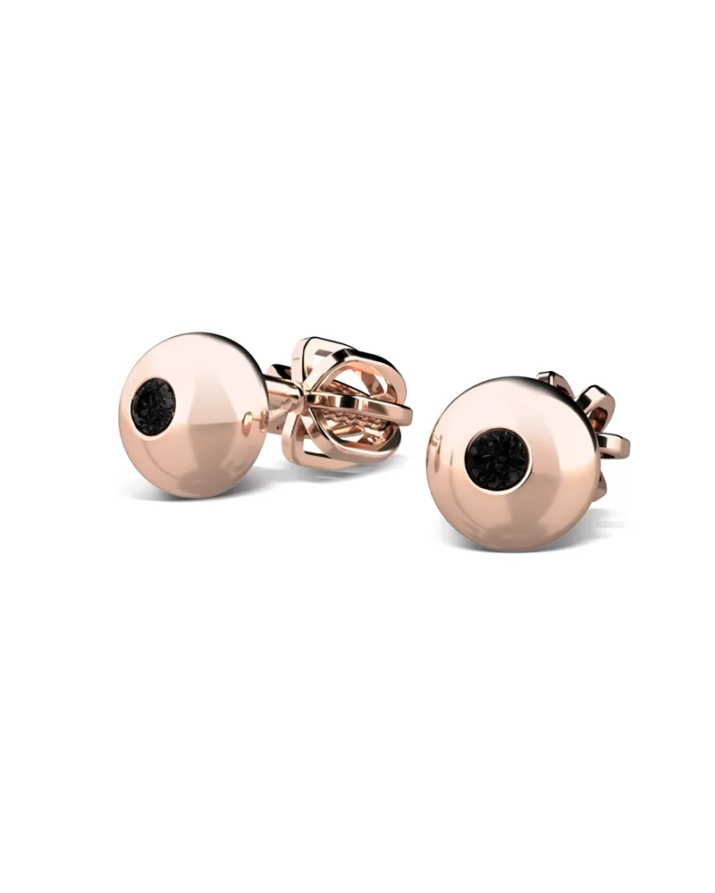 Náušnice sú čistého dizajnu v klasickom prevedení, ktorý patrí stále k najobľúbenejším typom. Tieto náušnice sú vyrobené z ružového štrnásťkarátového zlata - 585/1000 a sú celé v lesklej povrchovej úprave. Náušnice sú zdobené dvoma čiernymi diamantmi briliantového brusu. Vsadzovanie diamantov vykonávajú naši najskúsenejší majstri zlatníci ručne pod mikroskopom s presnosťou na 0,01 mm a preto nehrozí vypadnutie kamienkov ako to býva u strojne vyrábaných náušníc. Zapínanie náušníc je na skrutky a balóniky.