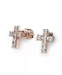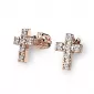 Náušnice v tvare krížikov sú v celej ploche posádzané diamantmi, vďaka skladbe a štýlovo čistému vsadeniu diamantov vynikajú krížiky krásnou brilanciou kameňov! Tieto náušnice sú vyrobené z ružového štrnásťkarátového zlata - 585/1000 a sú celé v lesklej povrchovej úprave. V náušniciach je vsadených 12 ks diamantov briliantového brusu, ktorý im dodáva dokonalú brilanciu, skvele odráža svetlo a september! Vsadzovanie diamantov vykonávajú naši najskúsenejší majstri zlatníci ručne pod mikroskopom s presnosťou na 0,01 mm a preto nehrozí vypadnutie kamienkov ako to býva u strojne vyrábaných náušníc. Zapínanie náušníc je na skrutky a balóniky.