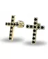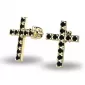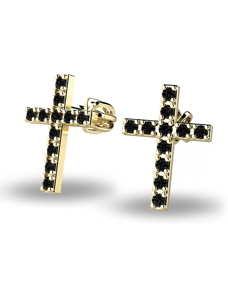 Náušnice v tvare krížikov sú v celej ploche posádzané čiernymi diamantmi, vďaka skladbe a štýlovo čistému vsadeniu diamantov vynikajú krížiky krásnym kontrastom čiernych diamantov a žltého zlata! Tieto náušnice sú vyrobené zo žltého štrnásťkarátového zlata - 585/1000 a sú celé v lesklej povrchovej úprave. V náušniciach je vsadených 22 ks čiernych diamantov briliantového brusu. Vsadzovanie diamantov vykonávajú naši najskúsenejší majstri zlatníci ručne pod mikroskopom s presnosťou na 0,01 mm a preto nehrozí vypadnutie kamienkov ako to býva u strojne vyrábaných náušníc. Zapínanie náušníc je na skrutky a balóniky.