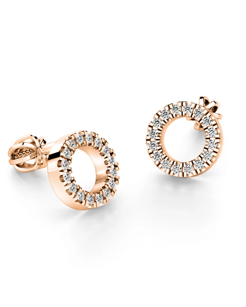 Náušnice „jamy“ v tvare krúžkov, tj. To, že náušnice sú priamo na uchu, je stále jedným z najobľúbenejších typov náušníc. Sú vyrobené z ružového štrnástich -karatových zlatých - 585/1000 a všetky sú v lesklej povrchovej úprave. Každé náušnice zahŕňajú šestnásť okrúhlych diamantov brilantného strihu, čo im dáva dokonalú brilanciu, skvele odráža svetlo a svieti zo všetkých pohľadov! Diamantové nastavenie vykonávajú naši najskúsenejší majstri ručne ručne pod mikroskopom s presnosťou 0,01 mm, a preto neexistuje riziko, že kamene padajú ako náušnice vyrobené v stroji. Upevňovacie náušnice sú určené pre bezpečné skrutky a balóny.