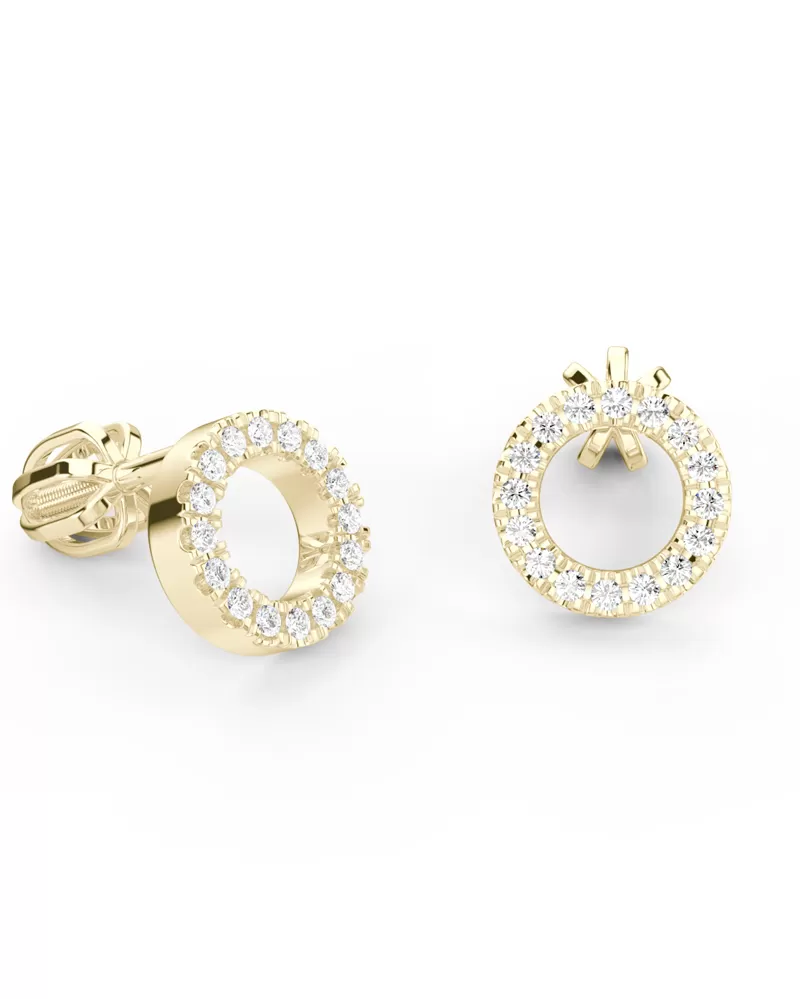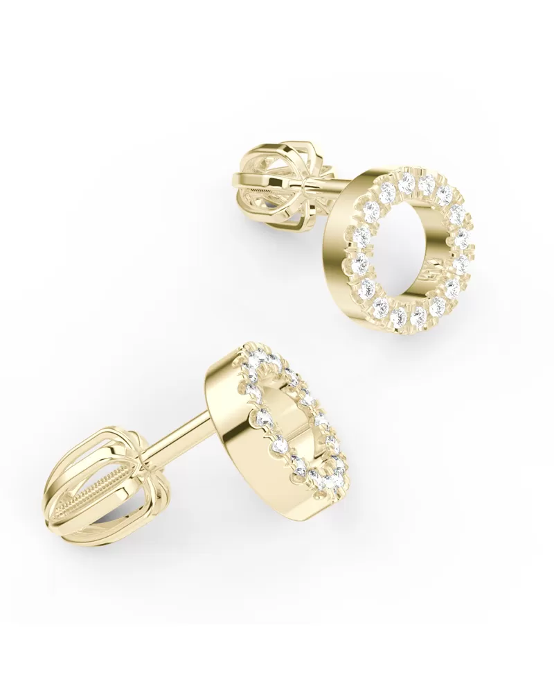 Náušnice "pecky" v tvare krúžkov tzn. že náušnice sú priamo na uchu, patria stále medzi najobľúbenejšie typy náušníc. Sú vyrobené zo žltého štrnásťkarátového zlata - 585/1000 a sú celé v lesklej povrchovej úprave. V každej náušnici je vsadených šestnásť okrúhlych diamantov briliantového brusu, ktorý im dodáva dokonalú brilanciu, skvele odráža svetlo a žiari z každého uhla pohľadu! Vsadzovanie diamantov vykonávajú naši najskúsenejší majstri zlatníci ručne pod mikroskopom s presnosťou na 0,01 mm a preto nehrozí vypadnutie kamienkov ako to býva u strojne vyrábaných náušníc. Zapínanie náušníc je na bezpečné skrutky a balóniky.