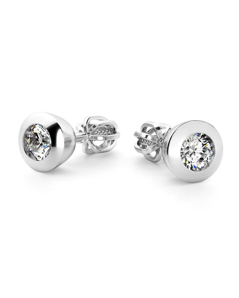 Klasický dizajn náušníc v elegantnej kombinácii lesklej obruby a väčších diamantov. Tieto náušnice sú vyrobené z bieleho štrnásťkarátového zlata - 585/1000 a sú celé v lesklej povrchovej úprave. Náušnice sú zdobené dvoma väčšími diamantmi o celkovej váhe 0,50 ct. Diamanty sú vybrúsené briliantovým brusom, vďaka ktorému majú diamanty dokonalú brilanciu, skvele odráža svetlo a žiari z každého uhla pohľadu. Vsadzovanie diamantov vykonávajú naši najskúsenejší majstri zlatníci ručne pod mikroskopom s presnosťou na 0,01 mm a preto nehrozí vypadnutie kamienkov ako to býva u strojne vyrábaných náušníc. Zapínanie náušníc je na skrutky a balóniky.