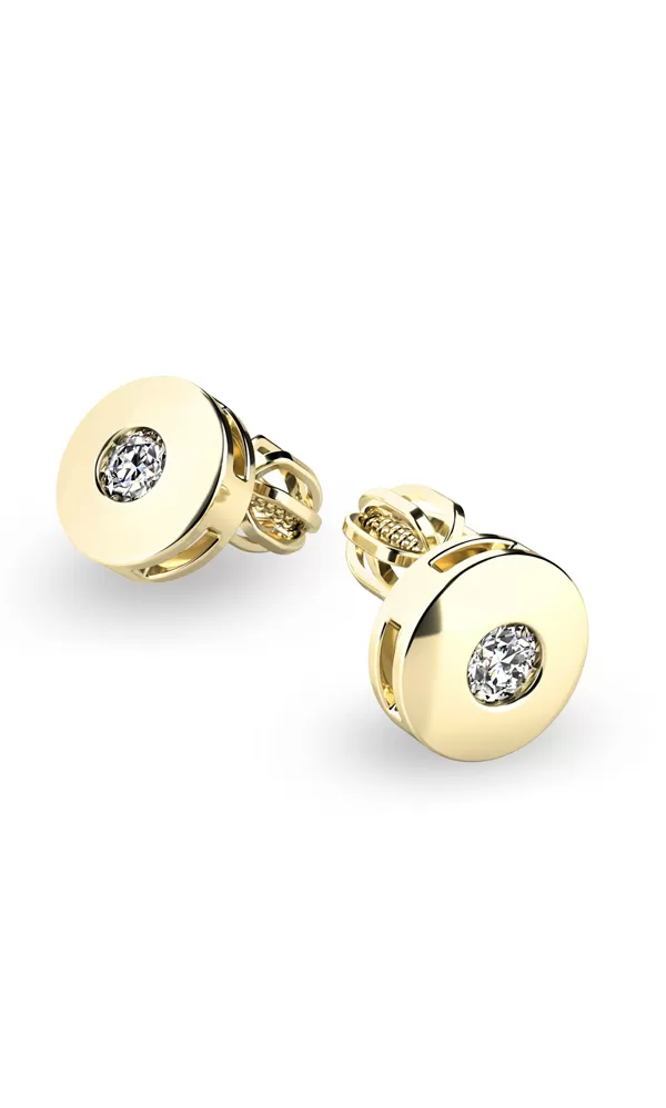 Tieto náušnice sú vyrobené zo žltého štrnásťkarátového zlata - 585/1000 a sú celé v lesklej povrchovej úprave. Nušnice sú zdobené dvoma diamantmi briliantového brusu. Diamanty sú v briliantovom bruse, vďaka ktorému dokonale odráža svetlo a neuveriteľne žiaria! Vsadzovanie diamantov vykonávajú naši najskúsenejší majstri zlatníci ručne pod mikroskopom s presnosťou na 0,01 mm a preto nehrozí vypadnutie kamienkov ako to býva u strojne vyrábaných náušníc. Zapínanie náušníc je na skrutky a balóniky.