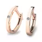 Jemné náušnice - oválky jsou vhodné pro každodenní nošení i na společenské akce a jistě budou slušet každé ženě. Tento model je zdoben dvěma menšími kulatými diamanty. Diamanty jsou v briliantovém brusu, který dodává diamantům maximální brilanci a lesk. Vsazování diamantů a drahých kamenů provádějí naši nejzkušenější mistři zlatníci ručně pod mikroskopem s přesností na 0,01mm a proto nehrozí vypadnutí kamínků jako to bývá u strojně vyráběných náušnic. Tyto elegantní náušnice jsou vyrobeny z růžového čtrnáctikarátového zlata - 585/1000 v lesklé povrchové úpravě.
