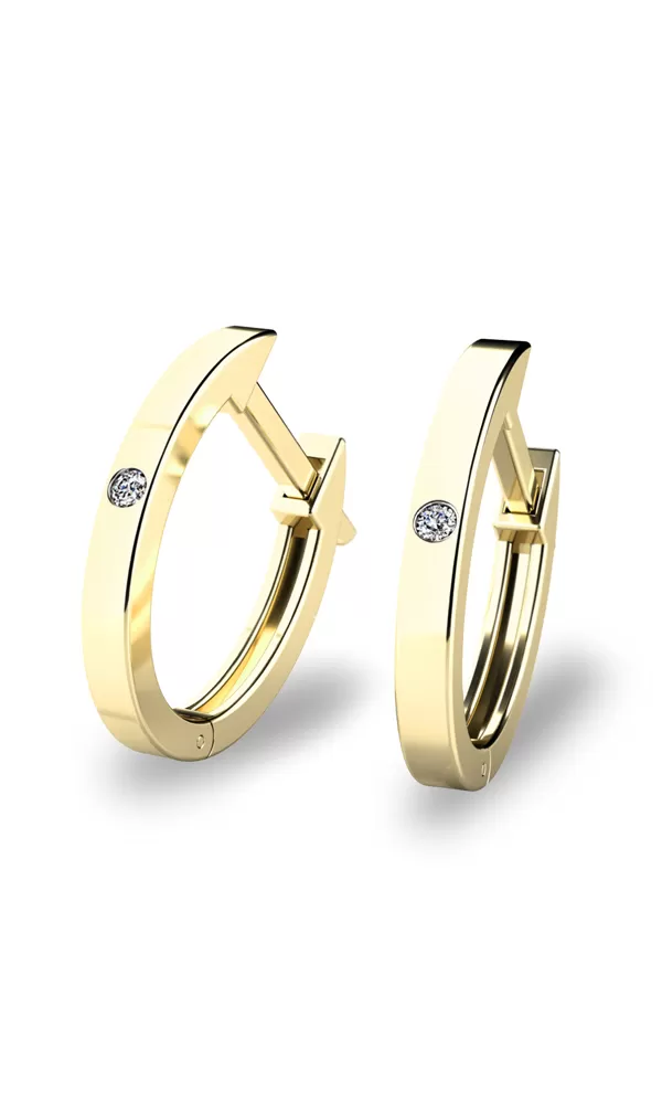 Jemné náušnice - oválky jsou vhodné pro každodenní nošení i na společenské akce a jistě budou slušet každé ženě. Tento model je zdoben dvěma menšími kulatými diamanty. Diamanty jsou v briliantovém brusu, který dodává diamantům maximální brilanci a lesk. Vsazování diamantů a drahých kamenů provádějí naši nejzkušenější mistři zlatníci ručně pod mikroskopem s přesností na 0,01mm a proto nehrozí vypadnutí kamínků jako to bývá u strojně vyráběných náušnic. Tyto elegantní náušnice jsou vyrobeny ze žlutého čtrnáctikarátového zlata - 585/1000 v lesklé povrchové úpravě.