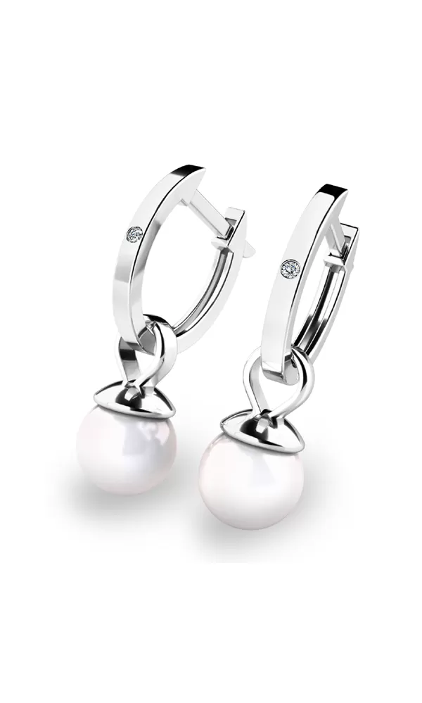 Jemné náušnice - oválky jsou vhodné pro každodenní nošení i na společenské akce a jistě budou slušet každé ženě. Tento model je zdoben dvěma menšími kulatými diamanty a kulatými sladkovodními perlami. Diamanty jsou v briliantovém brusu, který dodává diamantům maximální brilanci a lesk. Tyto elegantní náušnice jsou vyrobeny z bílého čtrnáctikarátového zlata - 585/1000 v lesklé povrchové úpravě.