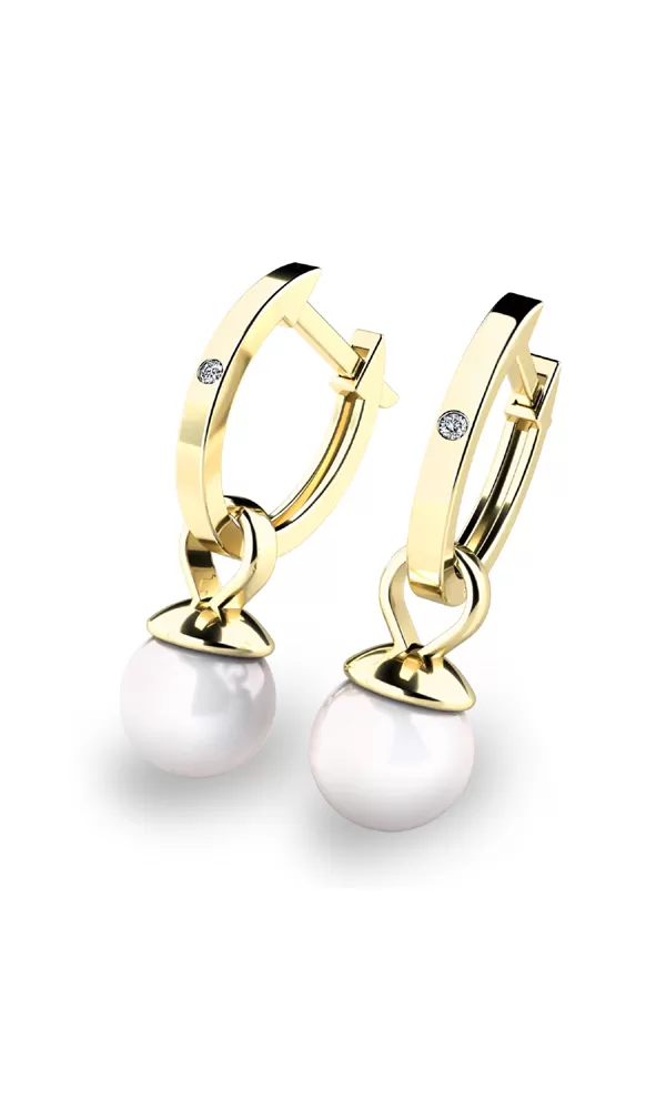 Dámske náušnice žlté zlato 585/1000 prírodný diamant 0,009 ct oválny s perlou 10861-ZL-DIA-FW