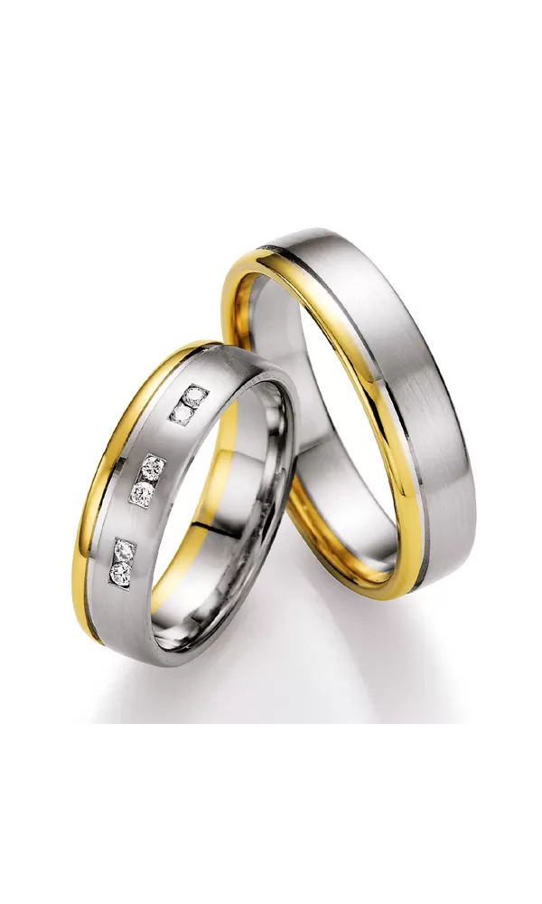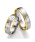 Zlaté snubné prstene vyrobené v kombinácii bieleho a žltého štrnásťtikarátového zlata - 585/000 v rovnom profile v povrchovej úprave zamatový mat na širšej bielej časti - užšia žltá časť lesklá oddelená lesklou. V dámskom prsteni je vsadených šesť okrúhlych diamantov briliantového brusu. Diamanty oplývajú svojou krásou a vlastnosťami, ktoré sú oproti iným kameňom bezkonkurenčné. Je to najtvrdší nerast, ktorý nikdy nestratí svoju hodnotu. Diamant je kráľ všetkých drahokamov a teda aj jedným z najcennejších a preto sa oplatí do šperkov s diamantmi investovať a predovšetkým pri snubných prsteňoch, ktoré sú na celý život!  Vsadzovanie diamantov vykonávajú naši najskúsenejší majstri zlatníci ručne pod mikroskopom s presnosťou na 0,01 mm a preto nehrozí vypadnutie kamienkov ako to býva u strojne vyrábaných snubných prsteňov. Snubné prstene majú vnútorný fit profil - zaoblenie vnútornej strany prsteňov.