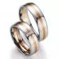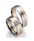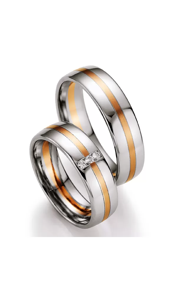 Zlaté snubné prstene vyrobené v kombinácii bieleho a ružového štrnástikarátového zlata - 585/000 v miernom polguľatom profile v povrchovej úprave zamatový mat na strednej časti - raje lesklé oddelené. V dámskom prsteni sú vsadené tri okrúhle diamanty briliantového brusu. Diamanty oplývajú svojou krásou a vlastnosťami, ktoré sú oproti iným kameňom bezkonkurenčné. Je to najtvrdší nerast, ktorý nikdy nestratí svoju hodnotu. Diamant je kráľ všetkých drahokamov a teda aj jedným z najcennejších a preto sa oplatí do šperkov s diamantmi investovať a predovšetkým pri snubných prsteňoch, ktoré sú na celý život! Vsadzovanie diamantov vykonávajú naši najskúsenejší majstri zlatníci ručne pod mikroskopom s presnosťou na 0,01 mm a preto nehrozí vypadnutie kamienkov ako to býva u strojne vyrábaných snubných prsteňov. Snubné prstene majú vnútorný fit profil - zaoblenie vnútornej strany prsteňov.