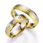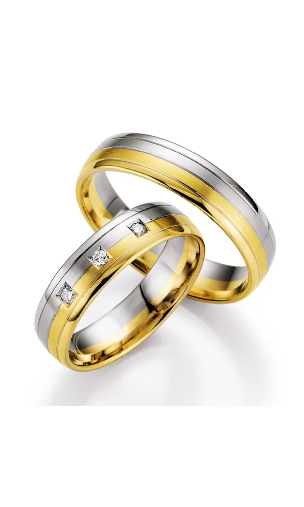 Zlaté snubné prstene vyrobené v kombinácii bieleho a žltého štrnásťkarátového zlata - 585/000 v mierne polguľatom profile v povrchovej úprave zamatový mat - lesk s tromi jemnými lesklými ryhami. V dámskom prsteni sú vsadené do štvorčeka tri okrúhle diamanty briliantového brusu. Diamanty oplývajú svojou krásou a vlastnosťami, ktoré sú oproti iným kameňom bezkonkurenčné. Je to najtvrdší nerast, ktorý nikdy nestratí svoju hodnotu. Diamant je kráľ všetkých drahokamov a teda aj jedným z najcennejších a preto sa oplatí do šperkov s diamantmi investovať a predovšetkým pri snubných prsteňoch, ktoré sú na celý život! Vsadzovanie diamantov vykonávajú naši najskúsenejší majstri zlatníci ručne pod mikroskopom s presnosťou na 0,01 mm a preto nehrozí vypadnutie kamienkov ako to býva u strojne vyrábaných snubných prsteňov. Snubné prstene majú vnútorný fit profil - zaoblenie vnútornej strany prsteňov.