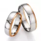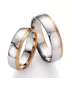 Zlaté snubné prstene vyrobené v kombinácii bieleho a ružového štrnásťkarátového zlata - 585/000 v pologuľatom profile. Širšia biela časť je zamatovo… Celý popis
