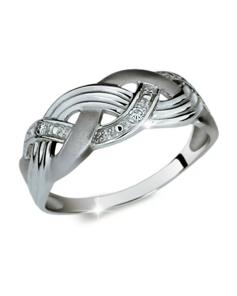 Dámsky prsteň je vyrobený z bieleho štrnásťkarátového zlata rýdzosti 585/1000 v kombinácii lesklej a matnej povrchovej úpravy s tromi diamantmi. Diamanty sú vybrúsené okrúhlym briliantovým brusom, ktorý zaisťuje maximálnu brilanciu vybrúsených facet, dokonale odráža svetlo a neuveriteľné žiari z každého uhla pohľadu! Vsadzovanie diamantov vykonávajú naši najskúsenejší majstri zlatníci ručne pod mikroskopom s presnosťou na 0,01mm a preto nehrozí vypadnutie kamienkov ako to býva pri strojne vyrábaných prsteňoch.