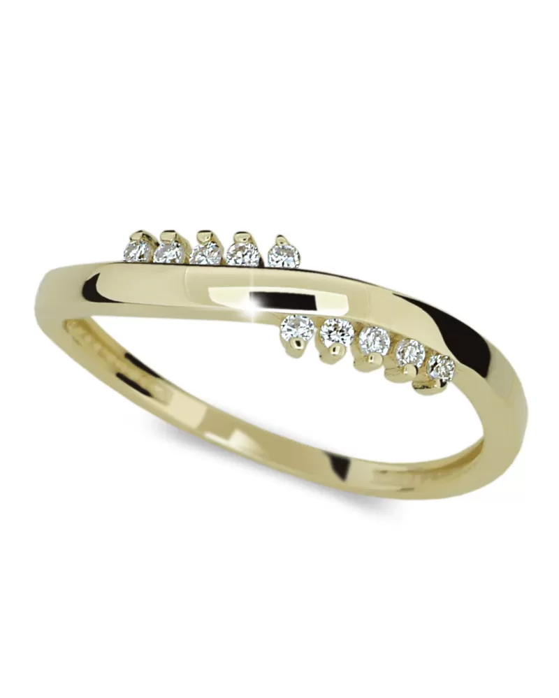 Dámsky prsteň vyrobený zo žltého štrnásťkarátového zlata rýdzosti 585/1000 v lesklej povrchovej úprave s desiatimi diamantmi. Diamant je v briliantovom bruse, ktorý zaisťuje maximálnu brilanciu vybrúsených facet, dokonale odráža svetlo a neuveriteľne žiari z každého uhla pohľadu! Vsadzovanie diamantov vykonávajú naši najskúsenejší majstri zlatníci ručne pod mikroskopom s presnosťou na 0,01mm a preto nehrozí vypadnutie kamienkov ako to býva u strojne vyrábaných príveskov.