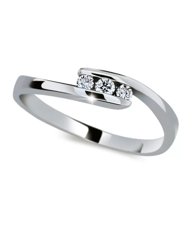 Tento prsteň zdobia tri okrúhle diamanty, ktoré sú pevne uchytené obrúčkou. Diamanty sú v briliantovom bruse, ktorý zaisťuje maximálnu brilanciu vybrúsených facet, dokonale odráža svetlo a neuveriteľné žiari z každého uhla pohľadu! s presnosťou na 0,01mm a preto nehrozí vypadnutie kamienkov ako to býva u strojne vyrábaných príveskov. Šperk je vyrobený z bieleho štrnásťkarátového zlata - 585/1000 v lesklej povrchovej úprave.