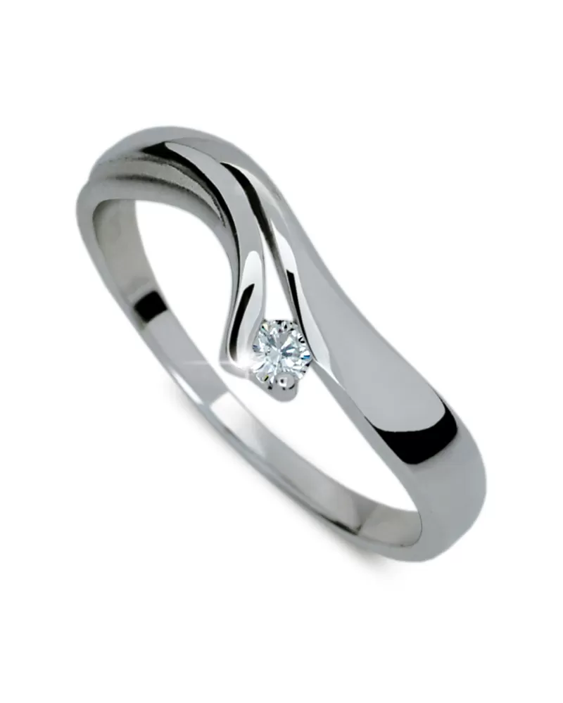 Krásne klenutý dámsky prsteň je oživený žiarivým diamantom. Diamant je v briliantovom bruse, ktorý zaisťuje maximálnu brilanciu vybrúsených facet, dokonale odráža svetlo a neuveriteľne žiari z každého uhla pohľadu! Vsadzovanie diamantov vykonávajú naši najskúsenejší majstri zlatníci ručne pod mikroskopom s presnosťou na 0,01mm a preto nehrozí vypadnutie kamienkov ako to býva u strojne vyrábaných príveskov. Šperk je vyrobený z bieleho štrnásťkarátového zlata - 585/1000 v kombinácii matnej a lesklej povrchovej úprave.