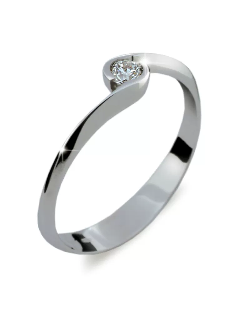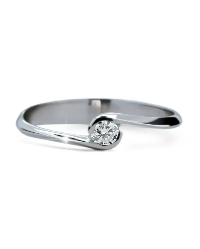 Elegantný prsteň zdobený jedným okrúhlym diamantom je navrhnutý tak, aby ste sa pri jeho nosení cítili výnimočne. Diamant je v briliantovom bruse, ktorý zaisťuje maximálnu brilanciu vybrúsených facet, dokonale odráža svetlo a neuveriteľné žiari z každého uhla pohľadu! Vsadzovanie diamantov vykonávajú naši najskúsenejší majstri zlatníci ručne pod mikroskopom s presnosťou na 0,01mm a preto nehrozí vypadnutie kamienkov ako to býva u strojne vyrábaných príveskov. Šperk je vyrobený z bieleho štrnásťkarátového zlata - 585/1000 v lesklej povrchovej úprave.