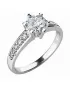 Luxusný diamantový prsteň je vyrobený z bieleho štrnásťkarátového zlata - 585/1000 v lesklej povrchovej úprave. Prsteň je vysadený jedným veľkým okrúhlym diamantom a 10 menšími diamantmi.