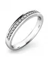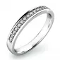 Prsteň vyrobený z bieleho štrnásťkarátového zlata - 585/1000 v lesklej povrchovej úprave. Tento prsteň je zdobený sedemnástimi diamantmi… Celý popis