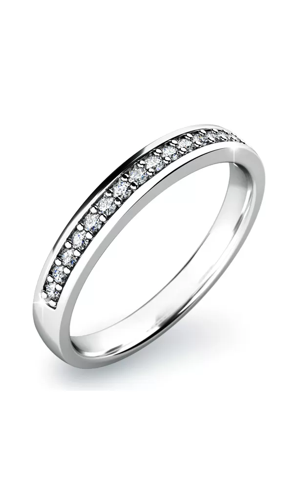 Prsteň vyrobený z bieleho štrnásťkarátového zlata - 585/1000 v lesklej povrchovej úprave. Tento prsteň je zdobený sedemnástimi diamantmi briliantového brusu, ktoré sú vsadené do jednej línie. Výška pri hlave prsteňa je mierne vyvýšená pre ešte väčší dojem zo žiarivých diamantov. Prsteň je možné kombinovať s inými prsteňmi a nosiť ich súčasne na jednom prste. Prsteň vyrábame a je skladom aj v žltom zlate.