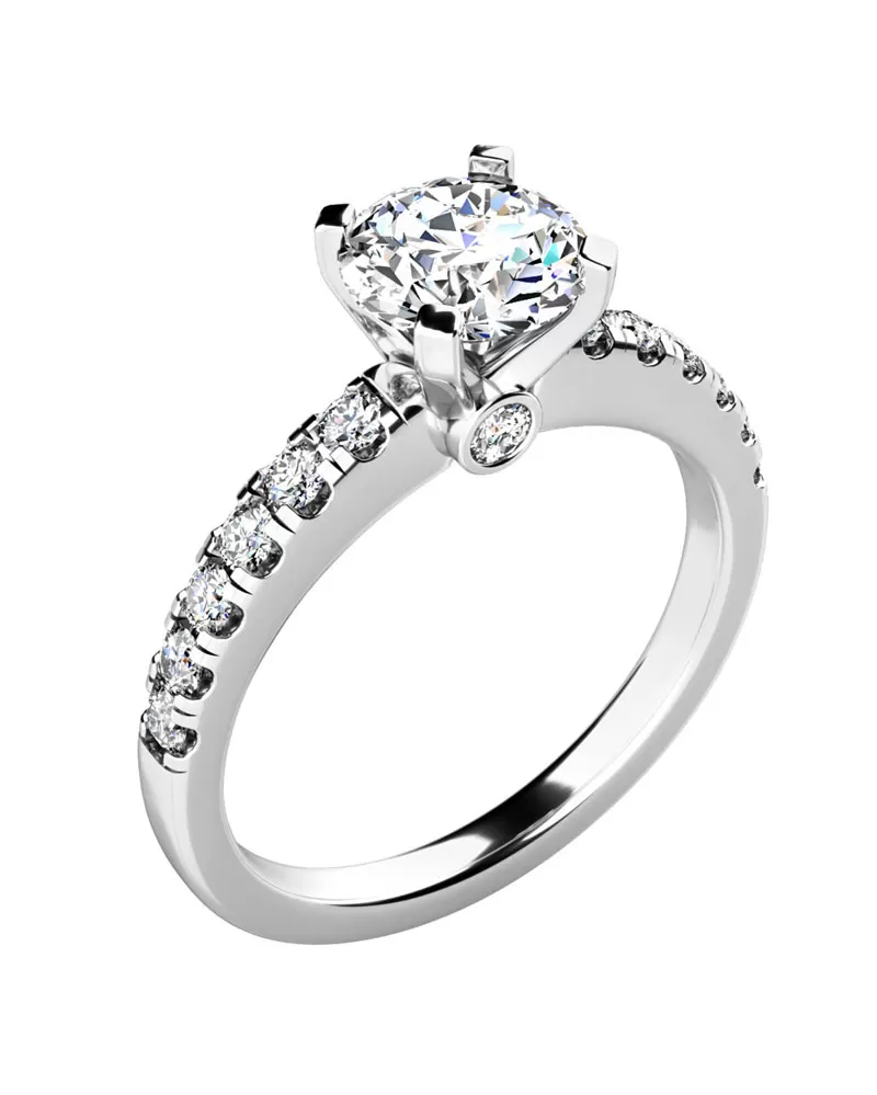 U tohoto prstenu můžete ovlivnit jeho cenu kvalitou použitých diamantů, především velkého středového diamantu. Rádi Vám do prstenu vsadíme diamant lepší kvality nebo v případě požadavku na nižší cenu Vám můžeme do prstenu vsadíme diamant o jednu nebo dvě třídy nižší kvality, kde pouhým okem rozdíl pozná jen zkušený gemolog (třídy diamantů se hodnotí pod desetinásobným zvětšením). Rádi Vám před vsazením diamantu do prstenu na ukázku a ke schválení připravíme standardní kvalitu a dle požadavku diamanty vyšší nebo nižší kvality.