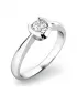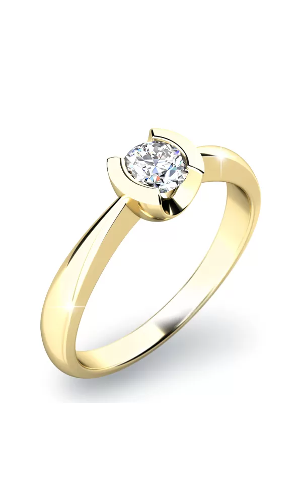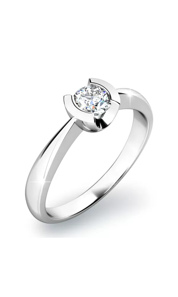 Zásnubný prsteň vyrobený z bieleho štrnásťkarátového zlata - 585/1000 v lesklej povrchovej úprave. Moderný prsteň s jedným stredovým okrúhlym diamantom briliantového brusu. Okrúhle usadenie diamantu dáva istotu originálneho a nápaditého prsteňa. Tento bude na ruke Vašej budúcej manželky priamo žiariť!