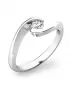 Jemný zásnubní prsten vyrobený ze čtrnáctikarátového zlata - 585/1000 v lesklé povrchové úpravě. Prsten má jeden diamant kulatého briliantového brusu, který je uchycený do elegantně a moderně zakroucené obroučky.
