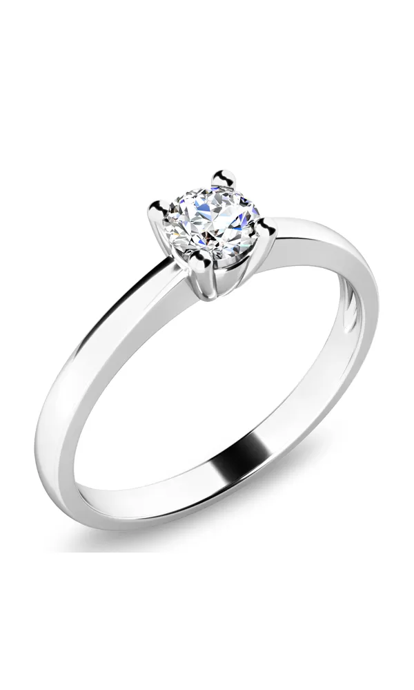 Jemný zásnubný prsteň vyrobený zo štrnásťkarátového zlata - 585/1000 v lesklej povrchovej úprave. Prsteň má jeden diamant briliantového brusu, ktorý je uchytený do štvorkrapňovej korunky. Prsteň je čistého dizajnu v klasickom prevedení, ktorý patrí stále k najobľúbenejším typom zasnubných prsteňov.