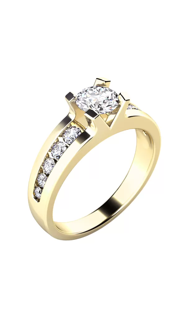 Žiarivý zásnubný prsteň je vyrobený zo žltého štrnáctikarátového zlata - 585/1000 v lesklej povrchovej úprave. štýlovo čistému vsadeniu zirkónov, prsteň vyniká krásnou brilanciou kameňov. Vsadzovanie zirkónov do zásnubných prsteňov vykonávajú naši najskúsenejší majstri zlatníci ručne pod mikroskopom s presnosťou na 0,01mm a preto nehrozí vypadnutie kamienkov ako to býva u strojne vyrábaných zásnubných prsteňov.