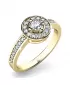 Luxusný zásnubný prsteň vyrobený zo žltého štrnásťkarátového zlata - 585/1000 v lesklej povrchovej úprave. Prsteň je tvorený hlavným väčším zirkónom uprostred a dookola osadenými menšími zirkónmi. Obrúčka prsteňa je do polovice tiež vysadená zirkónmi. Všetky zirkóny majú briliantový brus Signity star, ktorý zaisťuje maximálnu brilanciu kameňov. Vďaka skladbe a štýlovo čistému vsadeniu zirkónov, prsteň vyniká krásnou brilanciou kameňov. Vsadzovanie zirkónov do zásnubných prsteňov vykonávajú naši najskúsenejší majstri zlatníci ručne pod mikroskopom s presnosťou na 0,01 mm a preto nehrozí vypadnutie kamienkov ako to býva u strojne vyrábaných zásnubných prsteňov. Celý prsteň pôsobí dokonalým dojmom!