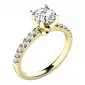 Zásnubný prsteň je vyrobený zo žltého štrnásťkarátového zlata - 585/1000 v lesklej povrchovej úprave. Prsteň má jeden hlavný dominantný zirkón okrúhleho brusu, ktorý je uchytený do štvorkrapňovej korunky. Toto uchytenie pomôže zirkónu dokonale vyniknúť jeho kráse a brusu. Po stranách v obrúčke prsteňa je vsadených 12 žiarivých zirkónov, ktoré prsteň zjemňujú. Všetky zirkóny majú briliantový brus Signity star, ktorý zaisťuje maximálnu brilanciu kameňov. Vďaka skladbe a štýlovo čistému vsadeniu zirkónov, vyniká prsteň krásnou brilanciou kameňov. Vsadzovanie zirkónov do zásnubných prsteňov vykonávajú naši najskúsenejší majstri zlatníci ručne pod mikroskopom s presnosťou na 0,01mm a preto nehrozí vypadnutie kamienkov ako to býva u strojne vyrábaných zásnubných prsteňov.