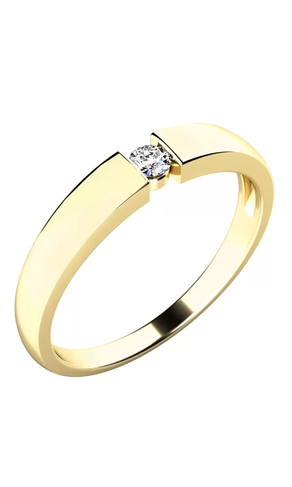 Nádherný a praktický zásnubný prsteň je vyrobený zo žltého štrnásťkarátového zlata - 585/1000 v lesklej povrchovej úprave. Do prsteňa je vsadený jeden okrúhlym zirkón, ktorý spája obrúčku prsteňa. Zirkón je vybrúsený briliantovým brusom Signity star, ktorý zaisťuje maximálnu brilanciu kameňa. Vsadzovanie zirkónov do zásnubných prsteňov vykonávajú naši najskúsenejší majstri zlatníci ručne pod mikroskopom s presnosťou na 0,01mm a preto nehrozí vypadnutie kamienkov ako to býva u strojne vyrábaných zásnubných prsteňov.