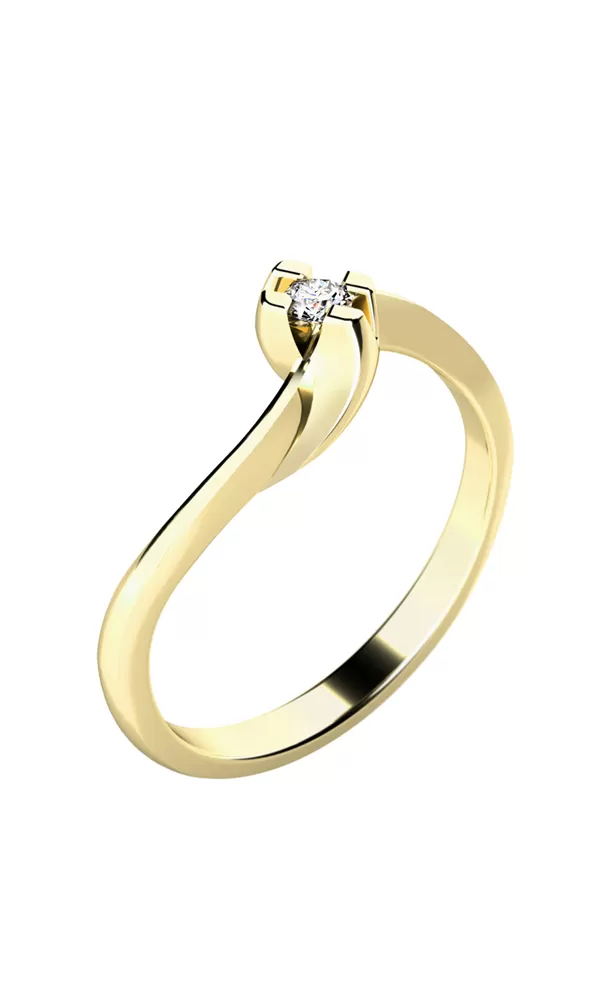 Zásnubný prsteň je vyrobený zo žltého štrnásťkarátového zlata - 585/1000 v kombinácii matnej a lesklej povrchovej úpravy. Prsteň má jeden okrúhly zirkón vsadený do štvorkrapňovej korunky. Zirkón je vybrúsený briliantovým brusom Signity star, ktorý zaisťuje maximálnu brilanciu kameňa. Vsadzovanie zirkónov do zásnubných prsteňov vykonávajú naši najskúsenejší majstri zlatníci ručne pod mikroskopom s presnosťou na 0,01mm a preto nehrozí vypadnutie kamienkov ako to býva u strojne vyrábaných zásnubných prsteňov.